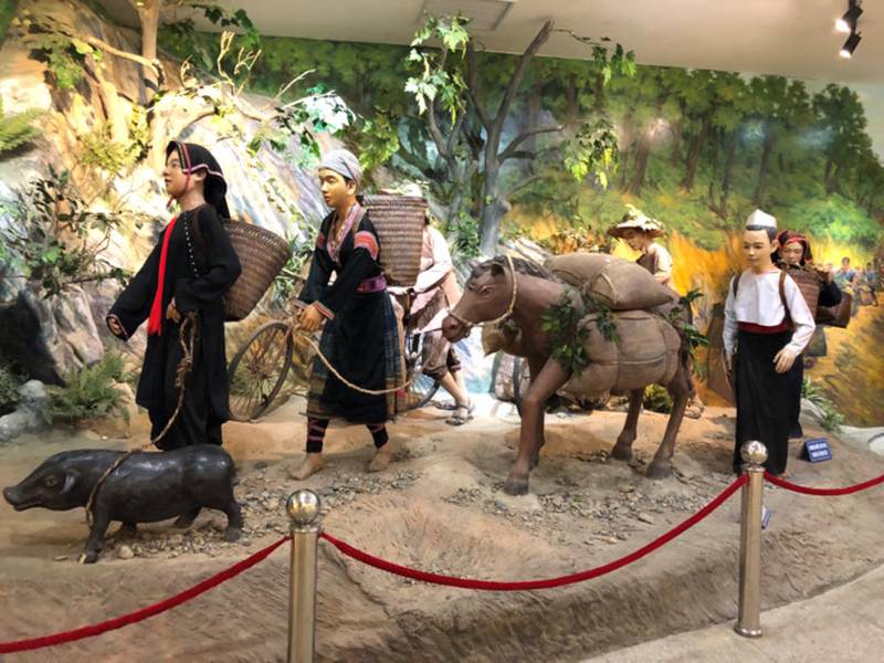 Đáng chú ý, nhiều mô hình tái hiện cảnh vận chuyển gạo, đạn, vũ khí bằng xe thồ, gùi, thúng trên vai của dân công hỏa tuyến – một biểu tượng của tinh thần “Hậu cần làm nên chiến thắng”.